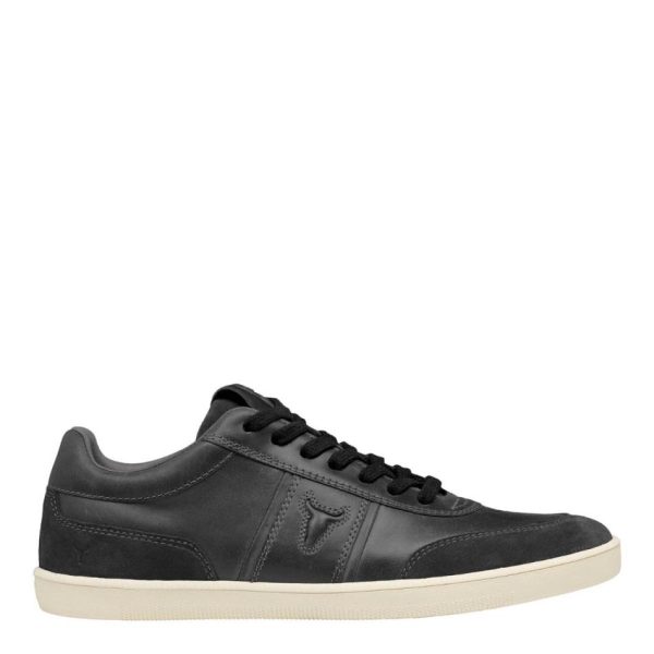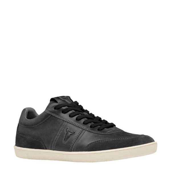 Casual men’s lace-up leather sneakers showcase sophisticated black leather upper with suede detailing on the toe and heel area. Intricate contrast stitch detail and a seven-eyelet facing lace inject sophistication into this modern classic. With a low-profile sports sole in a contrasting colour.