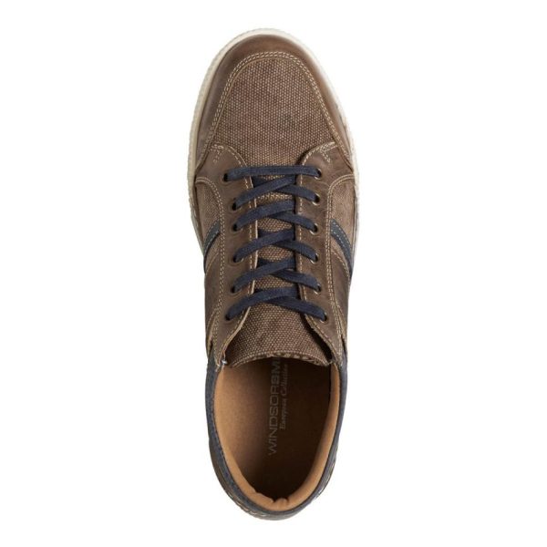 Smart casual shoes, featuring a canvas upper with leather detailing in khaki colour, these men’s lace-up sneakers offer both style and comfort.