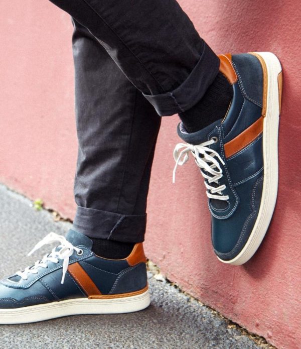 Casual shoes with a leather and suede upper in blue colour. These lace-up sneakers offer versatile style for any occasion.