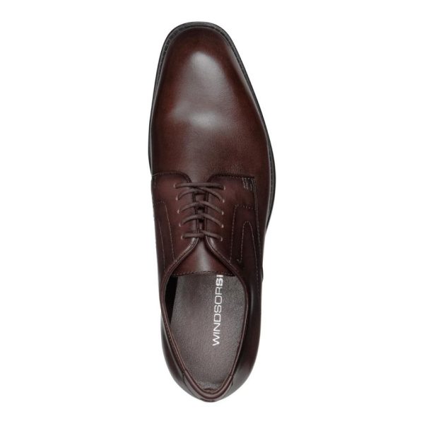 These dress shoes feature a hand-finished leather upper, non-leather lining, and a flexible T.P.R sole with a leather veneer heel. The design includes a soft almond toe and a five-hole lace-up derby style, with a 30 mm heel height.
