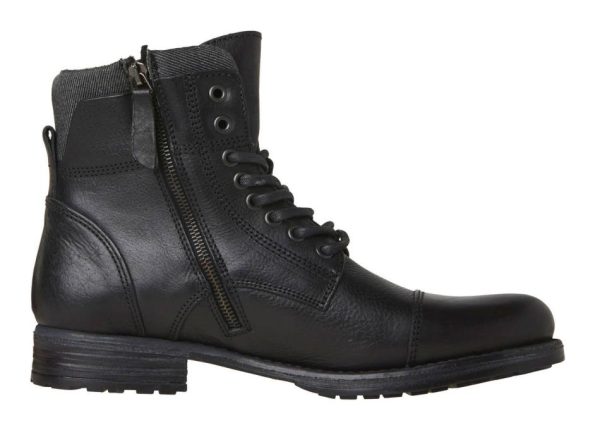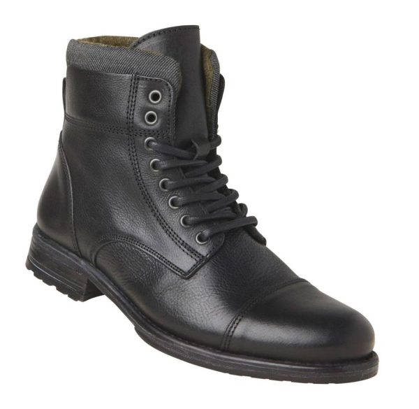 Feverr, our essential men’s black lace-up boots. With a sturdy construction and cleated sole, these casual men’s boots are both durable and reliable. Featuring a toe cap, padded topline collar, and inside zip for easy entry. They offer both style and comfort for everyday wear.