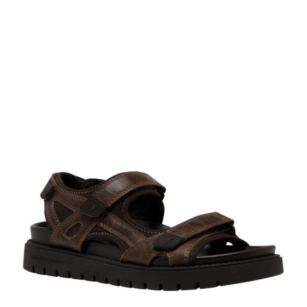 Comfort and style with our men’s brown leather sandals, crafted from premium leather with a distinctive wax/oil distressed finish, these black men’s sandals have three adjustable Velcro straps highlighting the iconic Windsorsmith Bull logo.