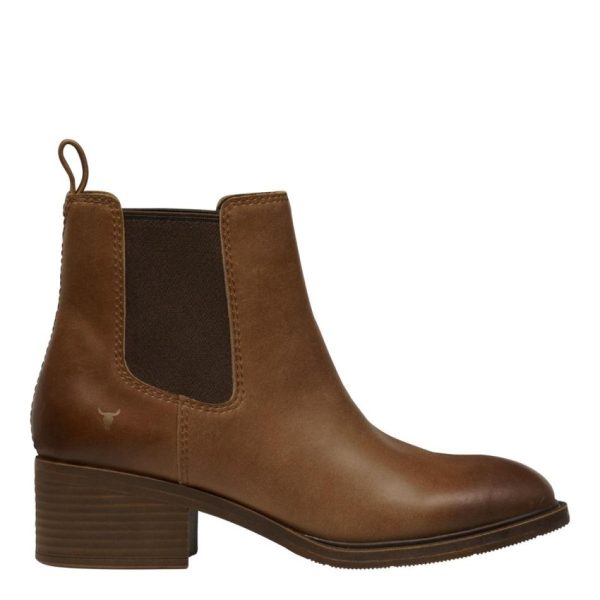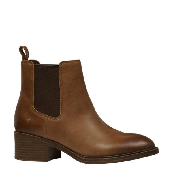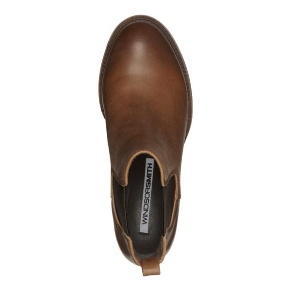 Tan Chelsea boots feature a sleek leather upper and a classic round toe. Double woven elastic gusset and a leather pull tab for easy wear.