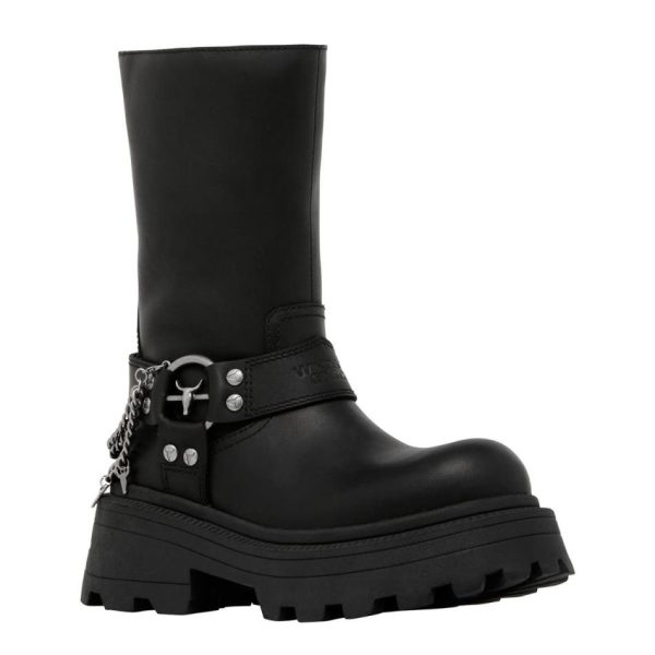 These black platform boots embody our unique style, featuring studded straps, O-ring hardware and detachable chains. With a cleated sole, they’re perfect for festival fits.